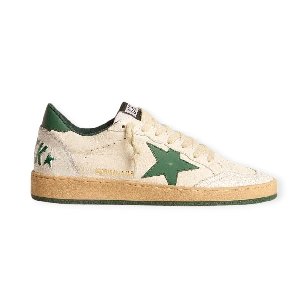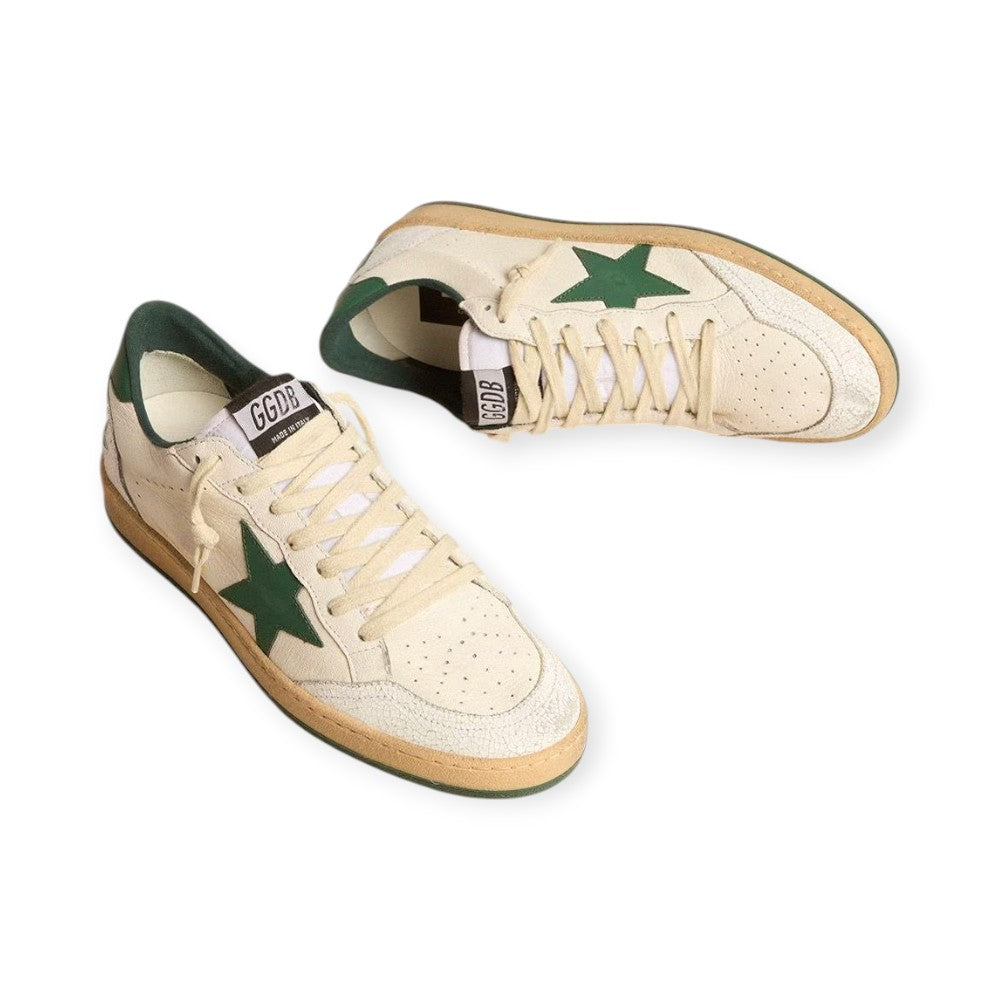 Una sneaker pensata per trasformare i tuoi momenti speciali in ricordi indimenticabili. Ispirata all'atmosfera dei college americani anni '80, questa Ball Star presenta la scritta Good Luck in verde sul tallone. Questo modello da uomo, con tomaia in nappa bianca, si distingue per la stella verde e i dettagli in pelle crackle bianca, come la punta e l'inserto sul retro. Tomaia in nappa bianca Scritta verde "Buona fortuna" sul tallone Stella in pelle verde opaco Linguetta sul tallone in pelle verde opaco Inserti in pelle crackle bianca Lacci color crema Sogliola verde Finitura vintage Tomaia: 56% pelle di pecora, 34% pelle di mucca, 8% poliestere, 2% nylon Fodera: 60% cotone, 40% pelle bovina Suola: 100% gomma Fatto in Italia