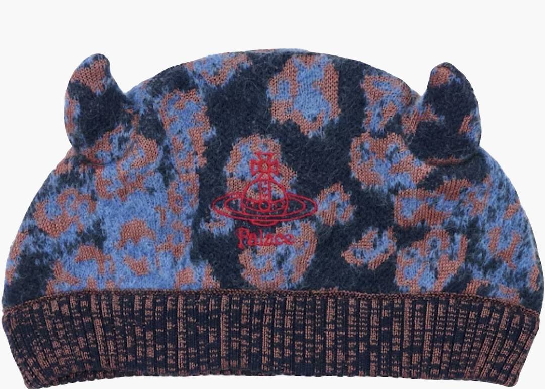 Palace x Vivienne Westwood Horny Beanie Pink Leopard la prima collaborazione tra la casa di moda britannica Vivienne Westwood e il brand di Skateboard inglese PALACE nasce dallo spirito sovversivo e politico che entrambe condividono.