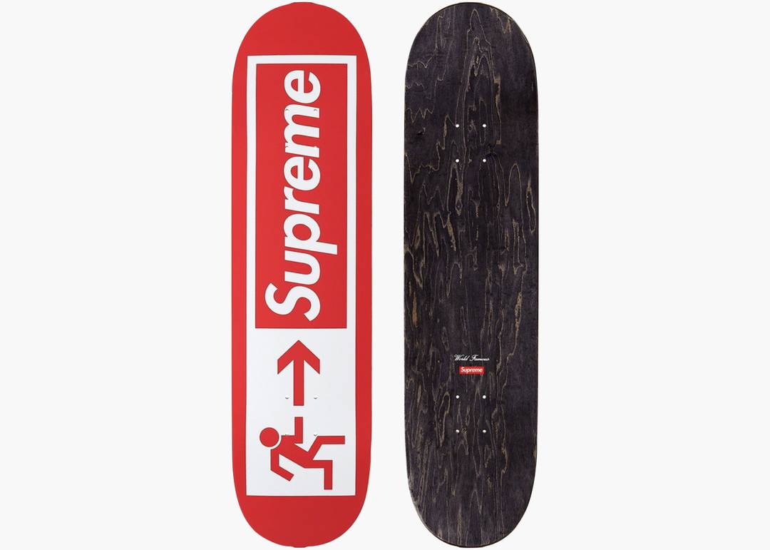Esplora il pericolo con il nuovissimo SUPREME EXIT DECK RED. Un diamante grezzo per collezionisti da tutto il mondo. L'audace reinterpretazione del cartello di "uscita d'emergenza" e il maxi logo Supreme in rosso ti sproneranno a cercare l'avventura. Disponibile in edizione limitata dall'11/03/2021.