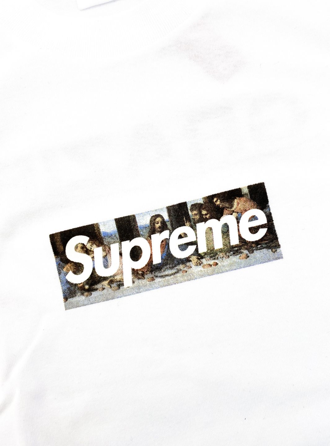 Tra gli articoli firmati Supreme più desiderati da appassionati e collezionisti si trova senz'altro la caratteristica Box Logo a tema che il brand rilascia in occasione delle aperture dei suoi flagship store. Quest'anno il drop di maggio ha coinciso con l'opening dello store di Milano è per questo il concept della stampa dell'iconica t-shirt si è ispirata all'arte italiana, raffigurando l'Ultima Cena di Leonardo Da Vinci con l’aggiunta della scritta “GRAZIE” sul retro. La Box logo è stata rilasciata in esclusiva nel nuovo negozio della capitale lombarda.